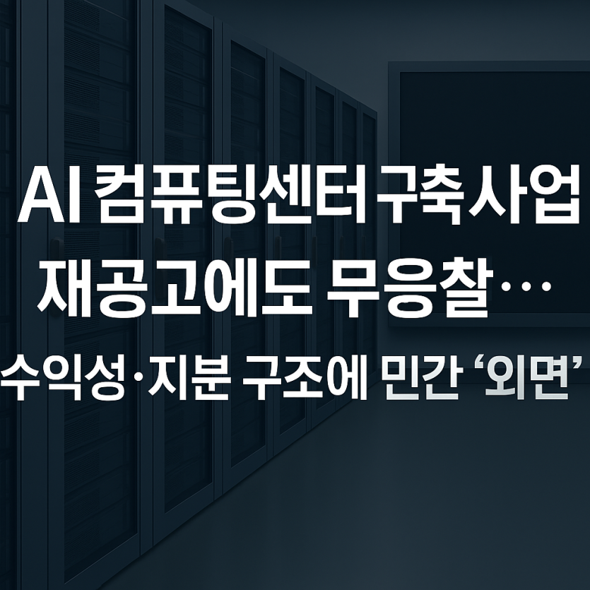 정부 주도의 대형 프로젝트인 인공지능(AI) 컴퓨팅센터 구축 사업이 재공고에도 불구하고 민간 기업들의 참여를 이끌어내지 못하고 유찰됐다. 이는 사업 수익성 부족과 불균형한 지분 구조가 민간 참여를 가로막았다는 지적과 함께 사실상 예고된 결과라는 분석이 나온다.